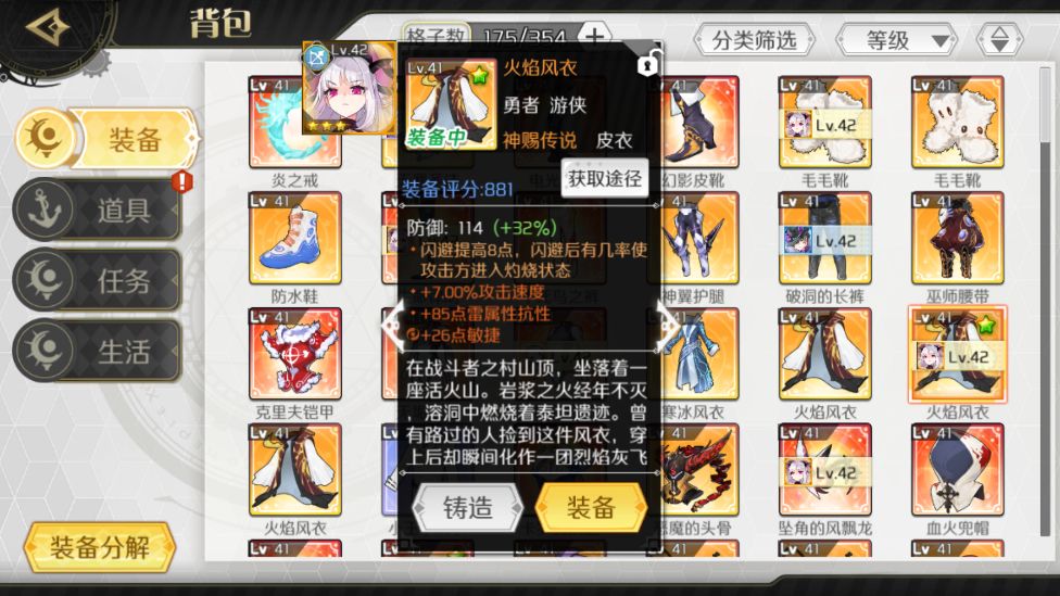装备有分各种品质,白蓝紫橙红。装备分解可以得到装备强化经验,如图