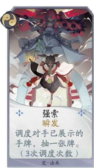 式神卡牌详解:觉的卡牌大多数都和敌方手牌密切相关,有些时候可以说是敌方手牌决定了我们觉的操作上限有多高,那么我们就来看一下觉的卡牌吧~