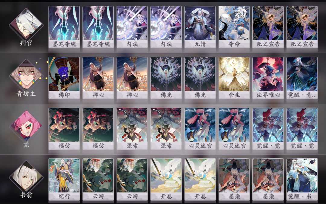 觉判外挂书翁觉醒卡组,根据个人喜好可以有其他带牌模式,比如下一张模仿多带一张棒球炸弹,不带法界唯心多带一张佛印,还可以不带云游觉醒书翁,带上万象之书来加厚卡组。主要思路前期稳住局势后三勾玉觉觉醒配合心灵迷宫开始限制对方,判官单解。