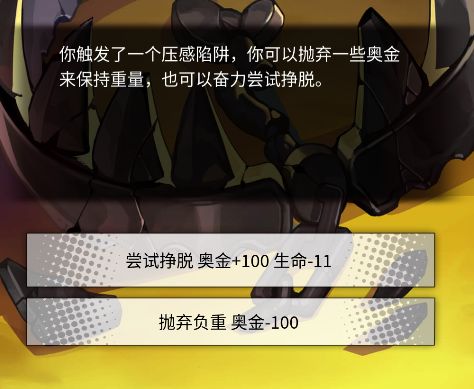 玩家进入该节点将会随机触发商店, 宝藏,事件三种节点类型之一。事件效果:玩家可以在事件中选择不同的选项来获得各种奖励,部分奖励将带有惩罚。