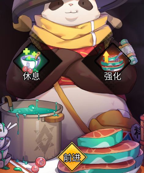 玩家进入该节点后,可以从升级卡牌,恢复自身生命这两个行为中选择其一进行。