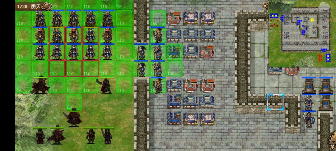 田字本质上是日字的变种,不过多说明,但是大家可以思考一下,站在关羽和曹操对角线中间的那个敌人,行动力是怎么样的(大师兄锁住了何金银)