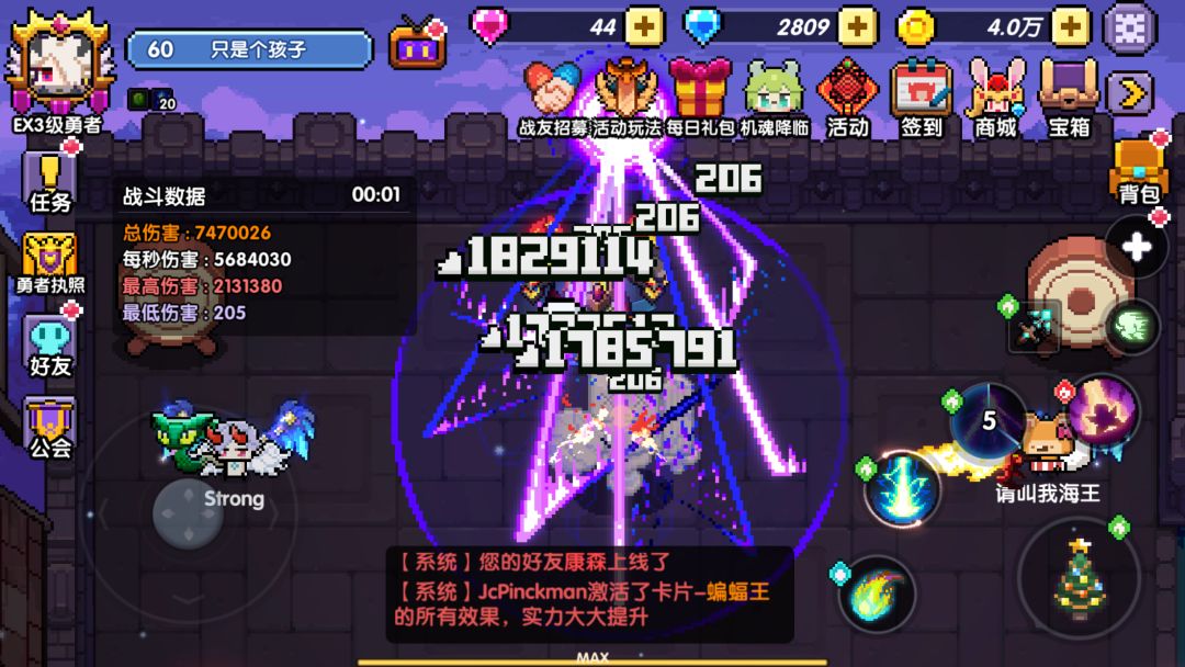 选用高 hit 潮汐,蝙蝠卡感电补充掉球, 测试从 0~20 层耗时及秒伤:耗时 1 分 20 秒,秒伤 368 万