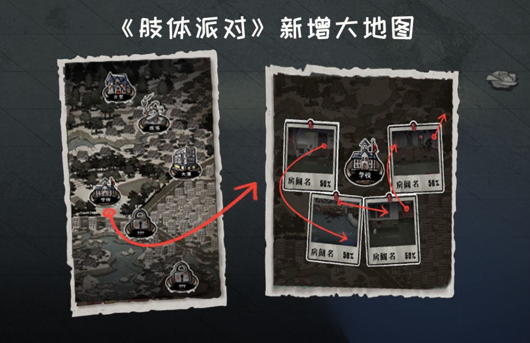 咳咳,说回正题。《肢体派对》除了新地图之外,还新增了大地图!玩家可在大地图上查看已经解锁的场景。值得注意的是,在地图上还可以看到每个场景的房间解锁顺序,保证以后探索都不会再迷路了!~(之前在首测时迷路过的小伙伴,快到评论区伸出你的双手,嘿嘿~)