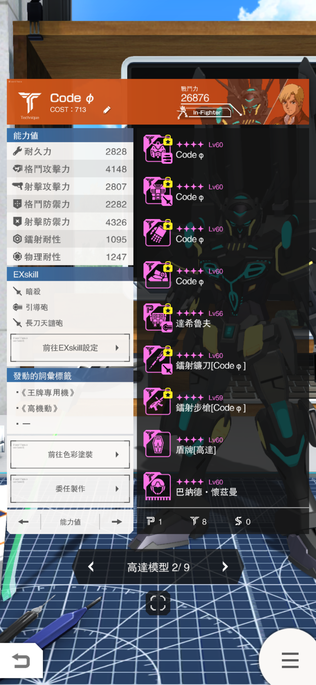 2.CODE和阿尔提米斯从外观上考虑(不考虑最强紫),总觉得背后缺少什么,特别是CODE给人感觉偏瘦。 搭配上GN工兵的背包意外合适,就是EX技能的导弹AI近距离打不到人。 所以就换成 有线浮游炮了,虽然没工兵背包好看,但还看得过去,而且有线浮游炮可以持续攻击刷小兵。