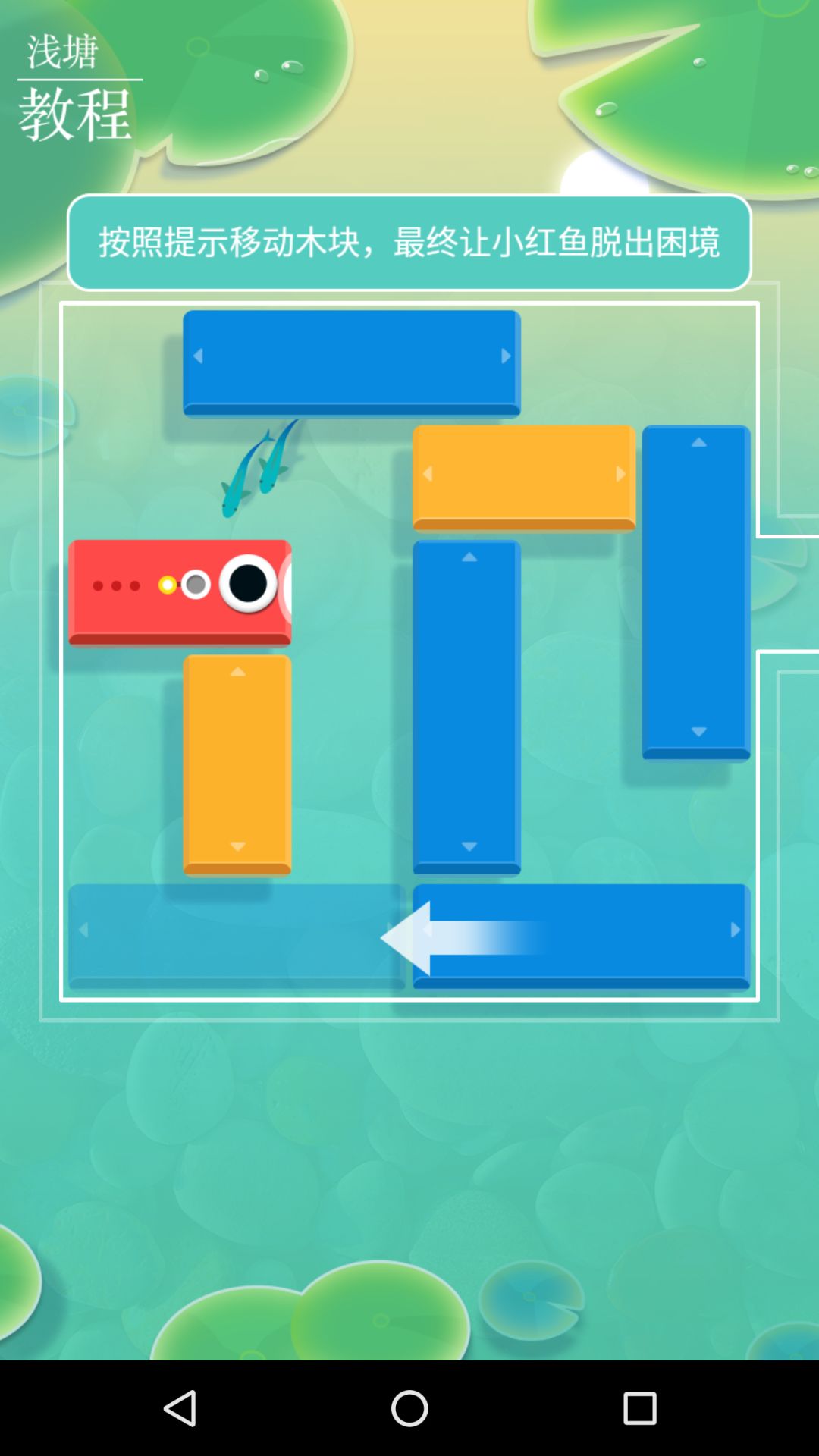主要是类似华容道的玩法,通过各种移动把小鱼放回池塘,横的只能横着走,竖的只能竖着走。