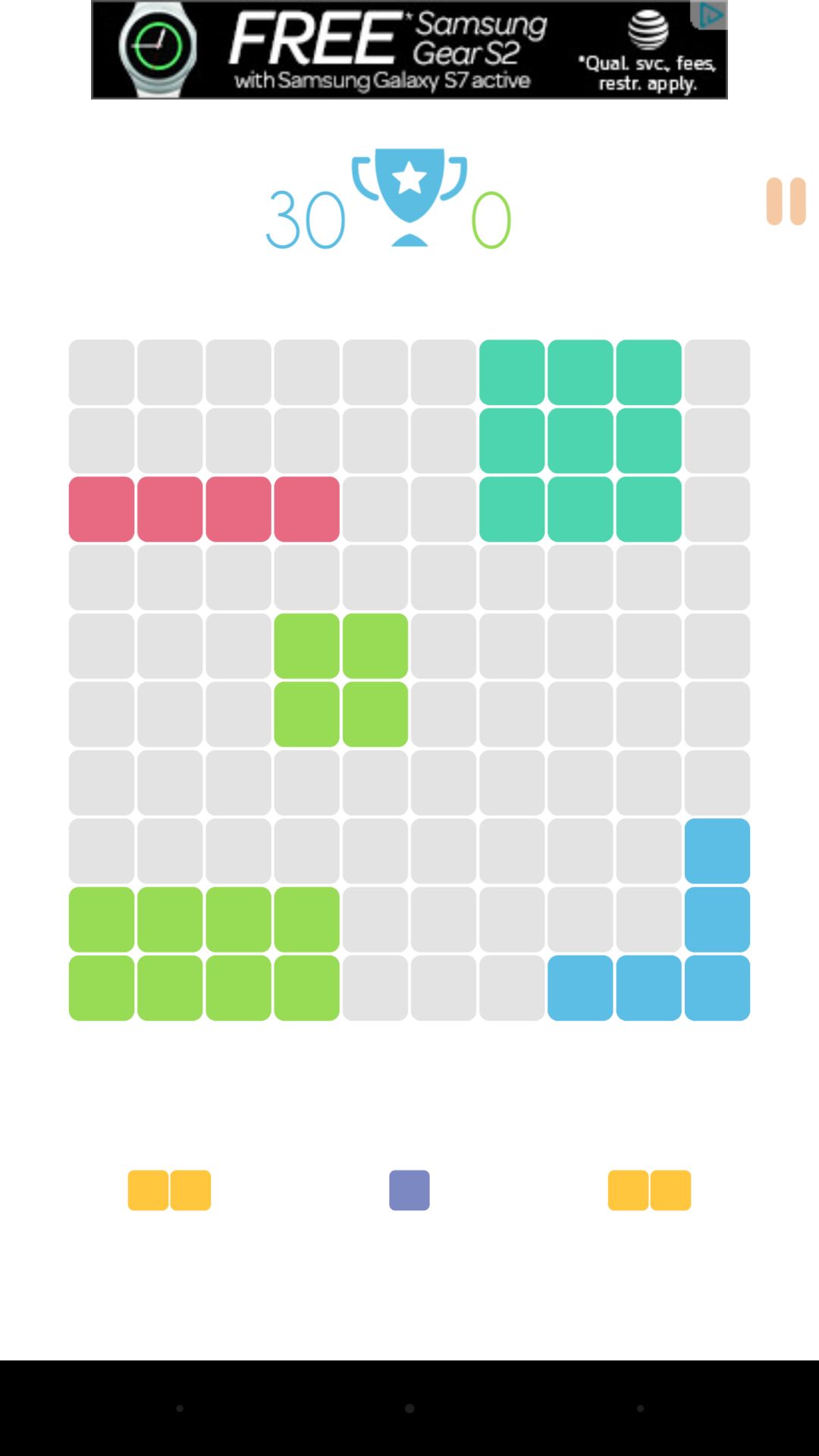 像是俄罗斯方块,不过位置可以随便摆放,形状也和俄罗斯方块不尽相同,所以别小看这个游戏,下面三个是可以随便选的,你下一个想放这三个哪个都行。