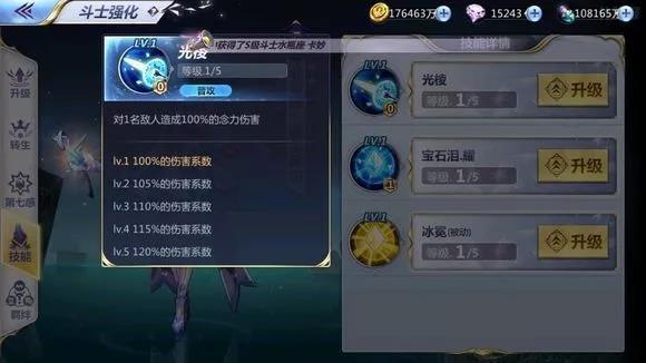 ▲塞尔尼娅为水晶权杖注入耀之小宇宙,使友方单位行动时,为其回复念力攻击120%(+治疗效果)的生命值(满级为140%念力攻击+治疗效果),若目标行动时未损血,则为己方血量最低单位回复念力攻击120%(满级140%念力攻击+治疗效果)的生命值(持续一个行动回合)。