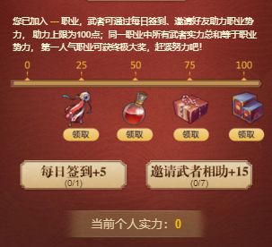 在活动中每日签到、成功邀请好友分别可获得5点和15点个人实力!