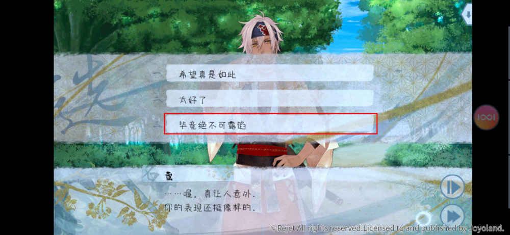 実彰可是被称为伶俐聪慧的武士这个选项该怎么选你应该清楚了吧~