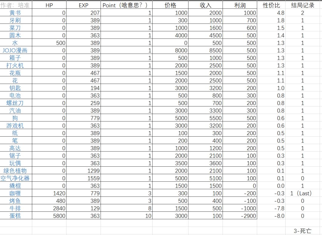 一时兴起肝了一份礼物数据集合出来,希望对大家肝结局有所帮助