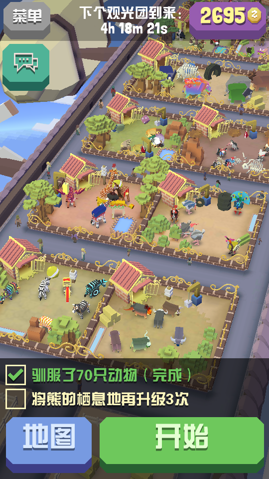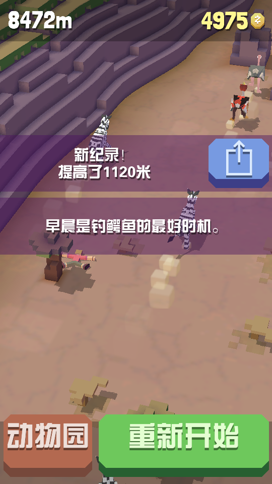 丛林只差猩猩一只。(最后楼主建议新手先升级鸵鸟,撞箱子×3金币,而且只要3级就可以解锁。然后把斑马升级。跳金币)楼主是个强迫症患者。所以没满全8级建造,不开下一个地图。但不建议这样做。优先开图,因为后面图的任务金币更丰富。箱子里面的金币也更多。还有动物能触发赚钱取的金币也更多。
