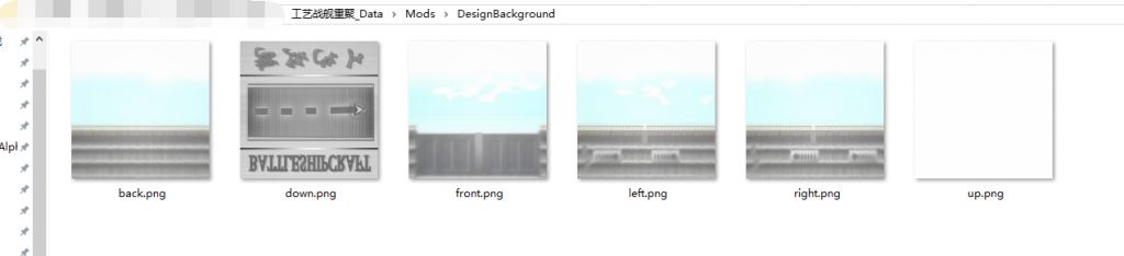 最后,将重命名好的图片文件放入游戏根目录\工艺战舰重聚_Data\Mods\DesignBackground中(如果没有Mods或DesignBackground请手动创建,请严格区分大小写)
