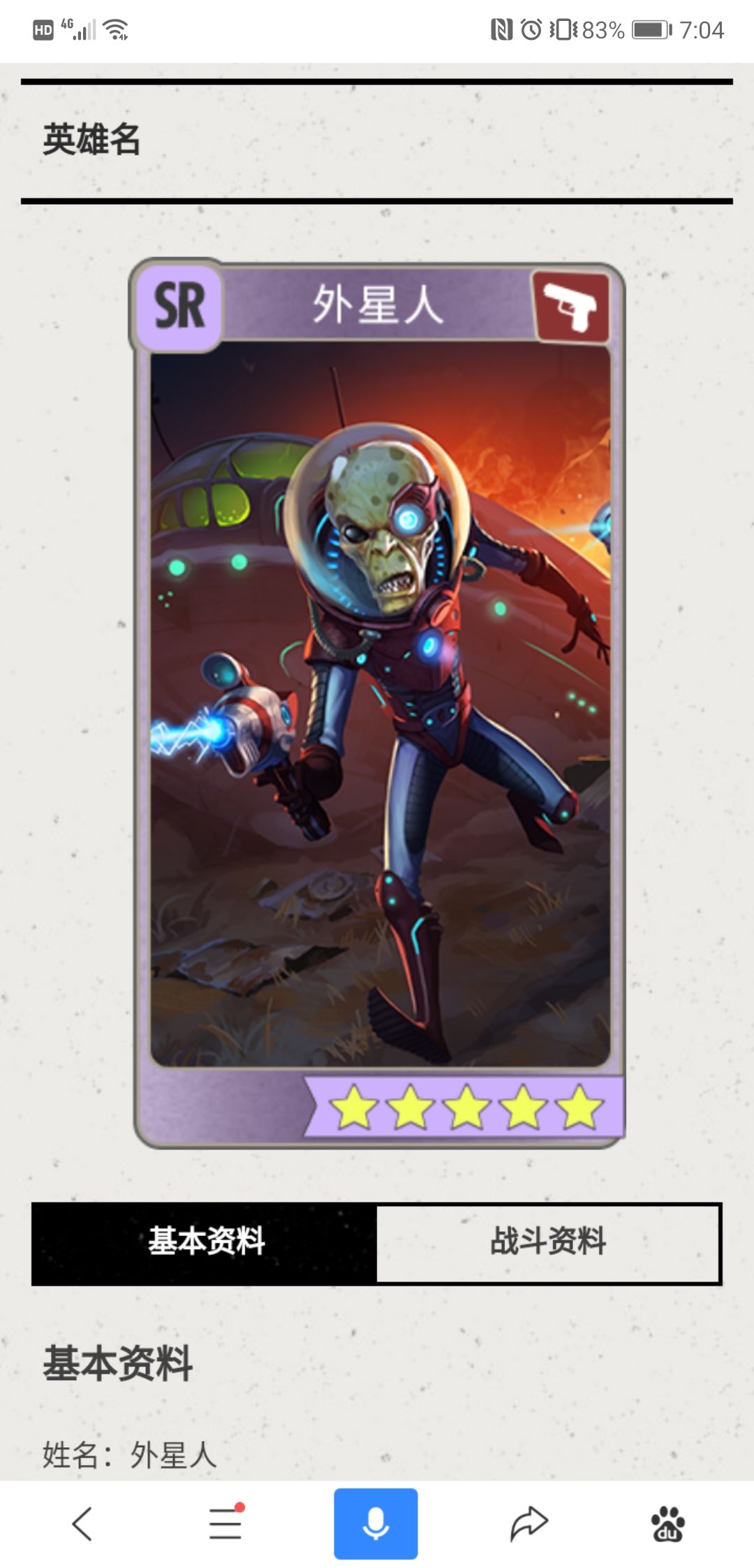 外星人和老麦一样是一个可以在竞技场稳定获得碎片的英雄,但是相对于老麦,他的持续周期更长,换句话来讲,老麦可能只能过渡前期,但是在后期,外星人才是一个不容小觑的存在,并且外星人是团队废土幸存者中不可缺少的一员(壮壮,局里,派普,尼克,外星人),可以说这个团队之中最重要也是唯一一个的输出点就是外星人
