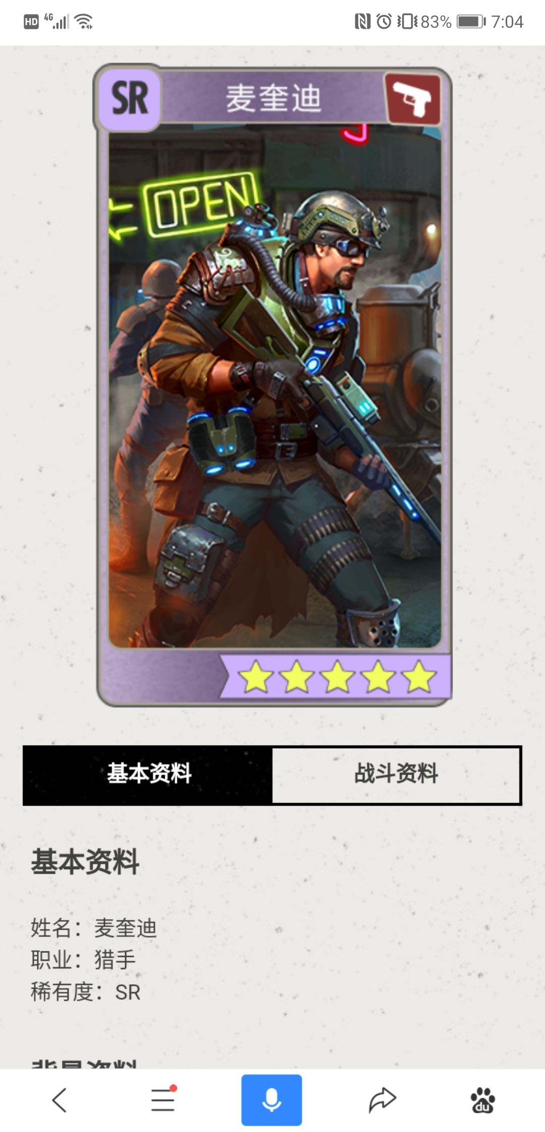 老麦是我们在完成新手任务之后第一次抽卡获得的SR,这就意味着他非同寻常。老麦可以说是平民版的丹斯,他们都是以超高的攻击力,打击单体目标而造成伤害的,相对于丹斯,虽然说老麦的技能前摇更加长久,但是他的伤害却是不容小觑的,而且更加亲民呦