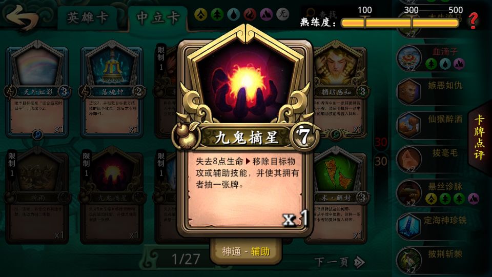 这个技能卡是上一个技能加一点攻击。紫卡效果,绿卡的价格。这个牌会给猴子的攻击大幅度上升。在看其他核心卡之一: