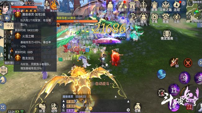 3.是否使用增加攻击力丹药。在斗气大陆上有许多可以增加攻击力的丹药,每种丹药都有5分钟的持续时间,刚好可以打完一次魔兽悬赏。若是与情缘进行组队,还可以使用“烟花·爱意浓”道具,可获得物理法术攻击增加8%的加成效果。