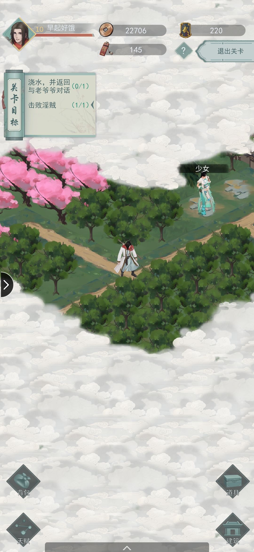 第十关:位置和第七关一样,如图,需跳到荷叶上,但是需要五级轻功,奖励为一个宝箱。内容如图(清浊白语提供)