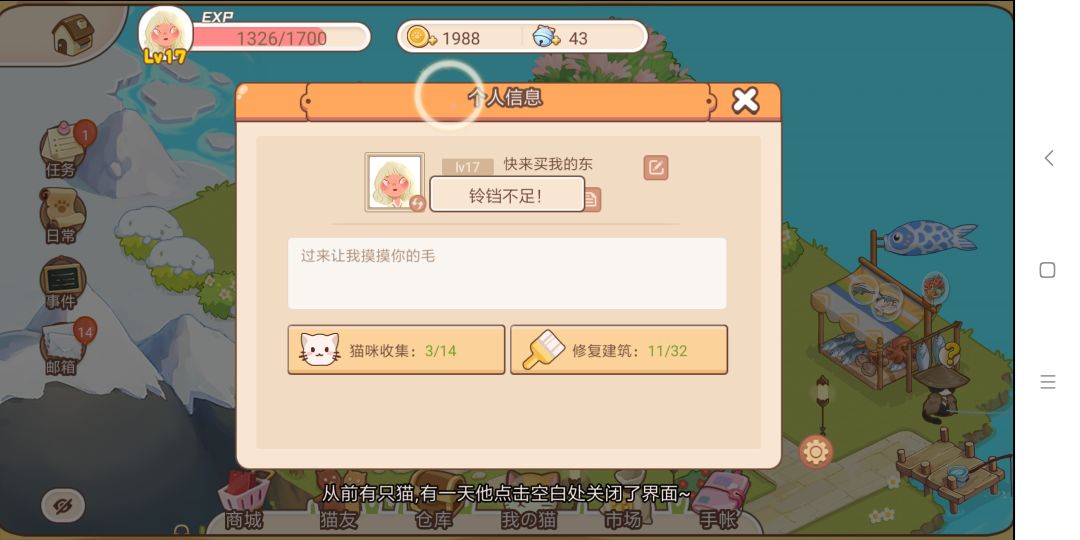4.改名只需消耗1铃铛,却老提示铃铛不足。