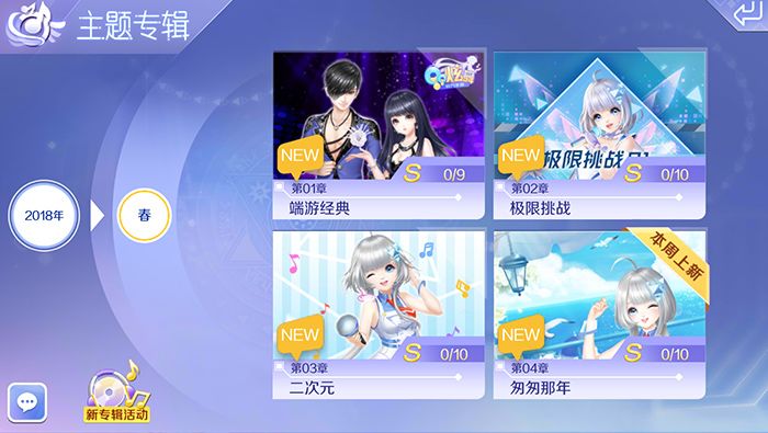除了星动模式、弹珠模式、泡泡模式之外,事务所中还包含了主题专辑功能,其中每个主题专辑中都包含10首关联歌曲。另外其中还有端游经典的四键模式,其中的歌曲都是端游中非常经典的歌曲。