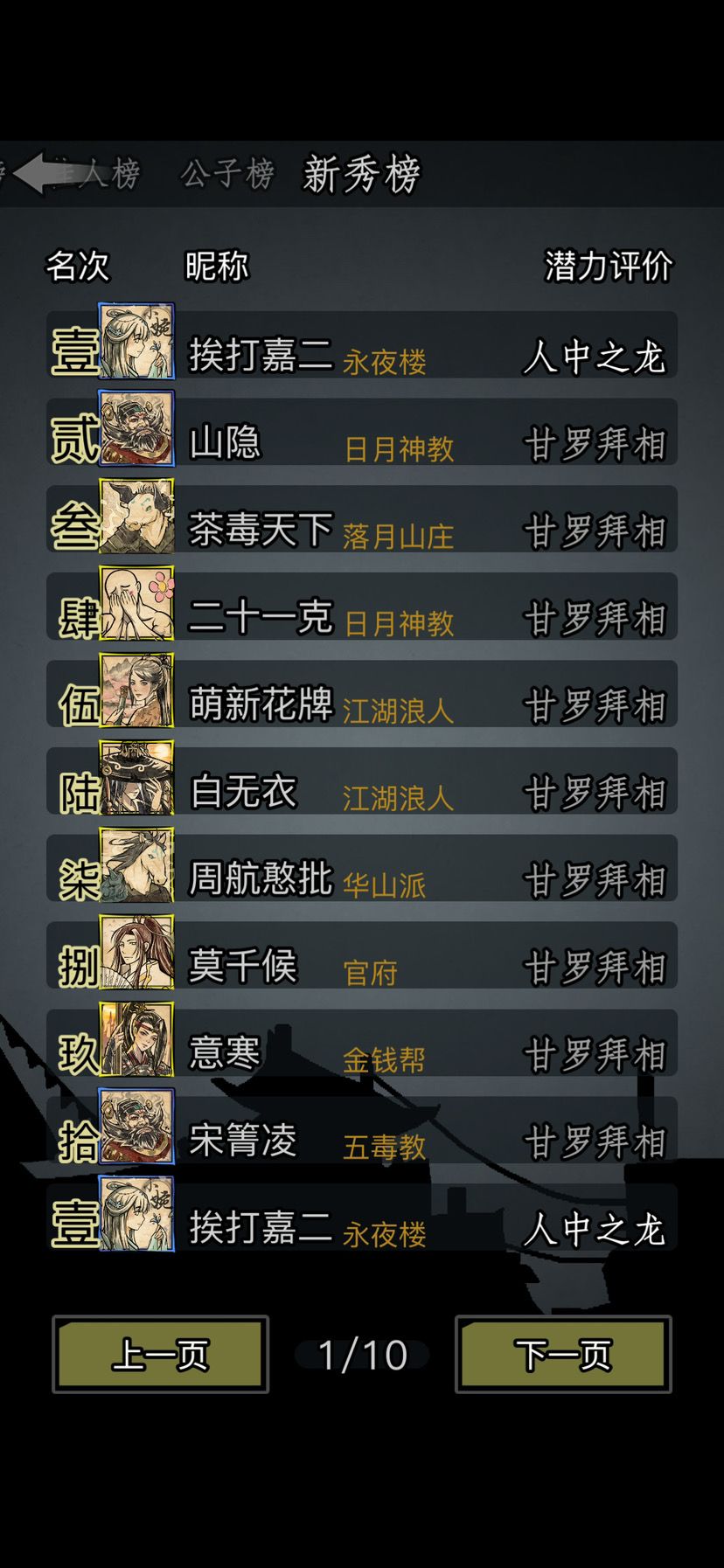 【江湖贤者】:能与其他玩家在同一房间内相遇,发送切磋邀请,但对方发送的切磋请求你将不显示,无法应战,但可以在记录里查询和回应