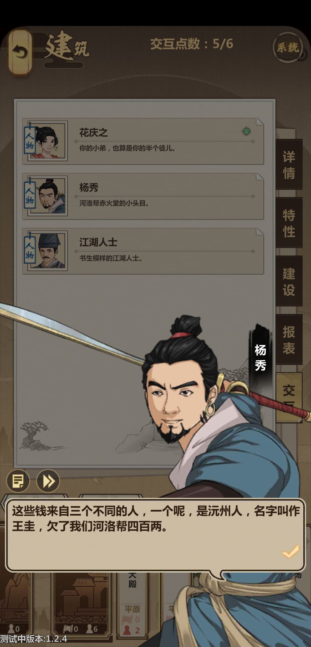 总结,选书法,是因为在集市写福字卖钱。。写一次办时辰。必要拿的东西有,树林买酒卖客栈的钱,买鞋卖鞋的钱,卖鱼的钱,卖烟的钱,庙里的心法,小孩的轻功,猎户的书或客栈侠客的特性。庙里的卖香钱。祈祷幸运的钱,死牛肉给衙门的钱。然后别的零零总总的。爆的破装备都卖喽,没用。