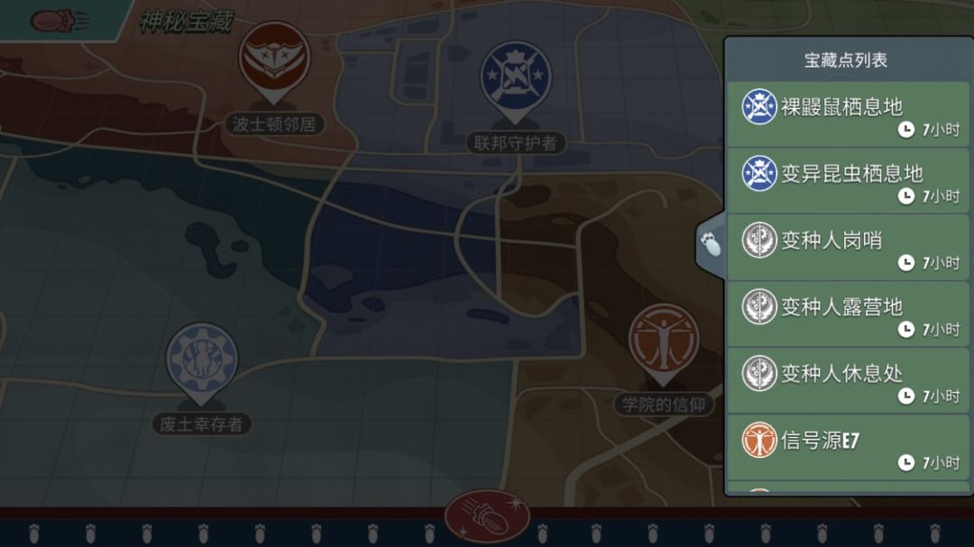 从开服到现在,一直在玩的玩家,基本都凑齐了废土幸存者的强大队伍,所以这个派系,是相对来说最容易通关的。全部通关以后,有四个宝藏点,可以依次派遣1个,2个,2个,3个本派系居民进行探索。获取糖衣炸弹,进行兑换。收益跟人物星级和品质有关。