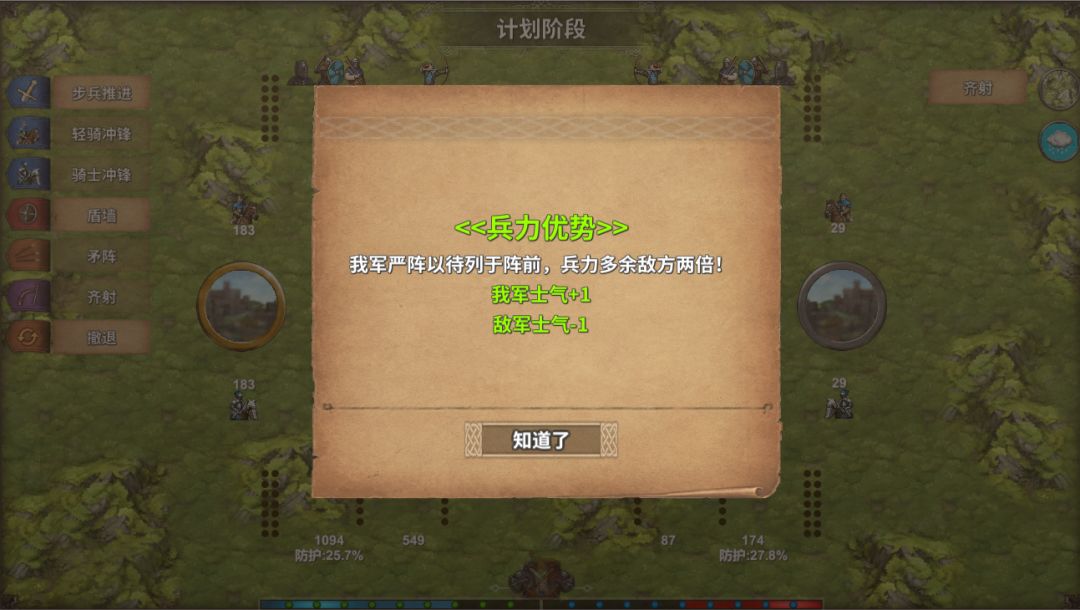 进入战斗后,我军优势,后去士气加成,敌方减少士气。