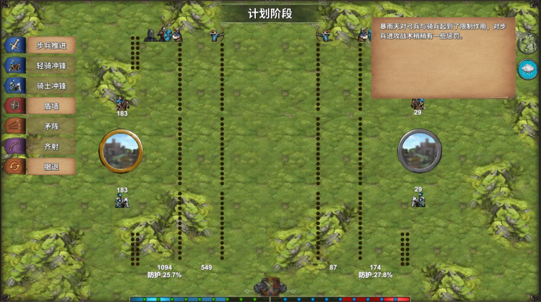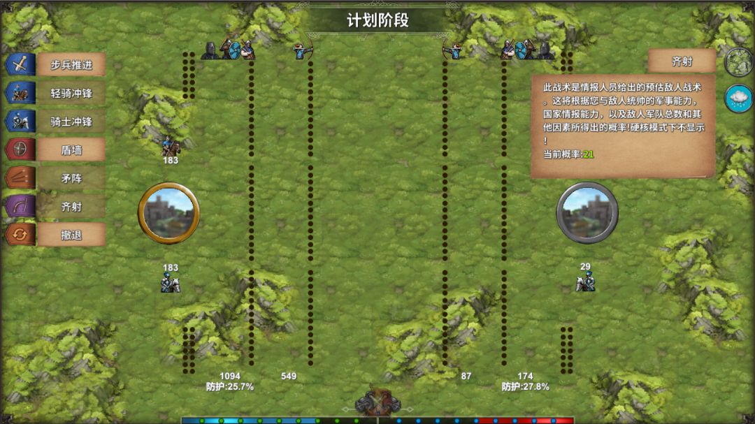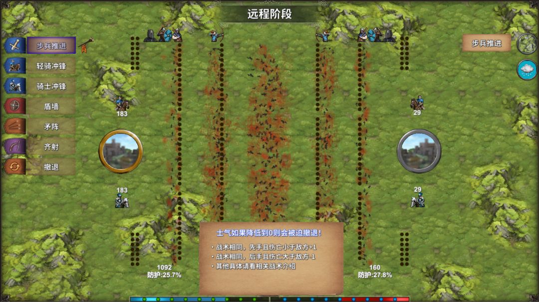 进入战术阶段,正面拼杀,如果是弓箭齐射有几率打断敌人进攻。