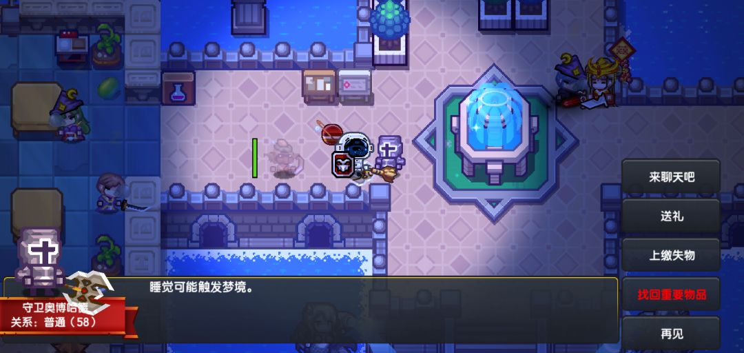 当我以为到这里就结束后,乌尔西亚像是想起来什么似的,站起来说:“差点忘了一件事,你们还记得我旁边的杂货店店主心血来潮买了一个什么妖精釜吧,刚放在那的那几天,冒险者到约恩村的次数突然就多了!”