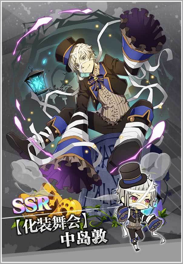 被变装宴会的服装包裹住的中岛敦。没有穿惯的服装让他脚下不稳,似乎总是在摔跤。请注意飞过来的绷带。