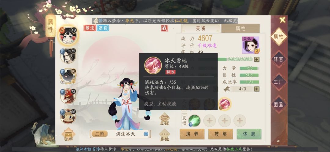 炼妖是把两个护驾练成一个,甚至还有结果预览,也不难理解,这游戏目前有四个隐藏技能,最后一个就是冰天雪地,五目标三段法术输出,直接上图