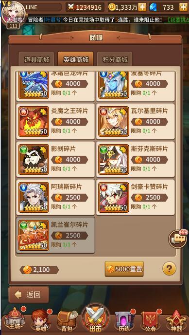 .英雄副本:建议日常钻石扫荡次数用光…(在对应的战力情况下,英雄副本扫荡性价比还是很高的)