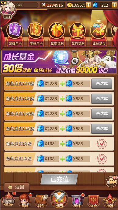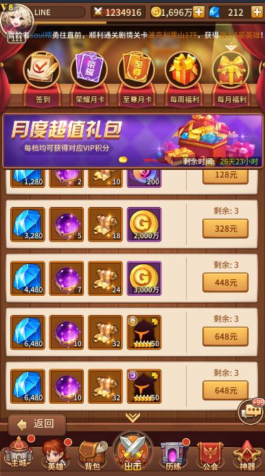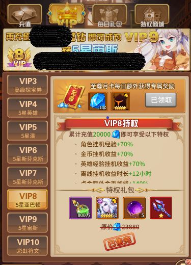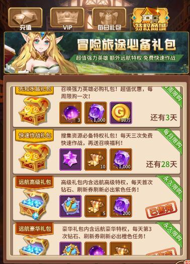 (各个vip等级有对应的礼包,可考虑用钻石购买,性价比也很高的)
