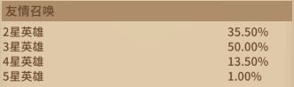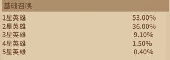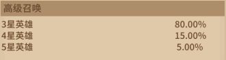 概率:5星英雄(英雄掉落概率10%,碎片掉落概率20%)4星(英雄掉落概率70%)