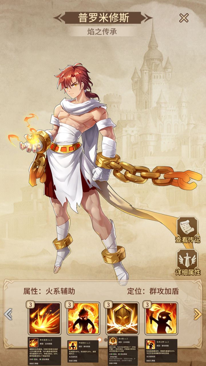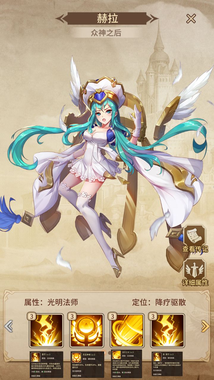 加全队暴击率、爆伤、速度(需达到相应技能等级)概率眩晕对方英雄,百分比提升我方2名英雄攻击。