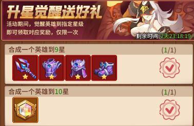 升星活动有两种:一种是合成五星、合成六星累计次数的(无配图)一种是合成9星和十星的单次奖励(如图)