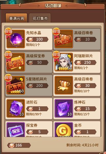 优先考虑5个超值商品(很多时候,活动材料不够,兑换不完的)(我最富那次也就才点了超值,卷子,探宝,其他4项没点多少)