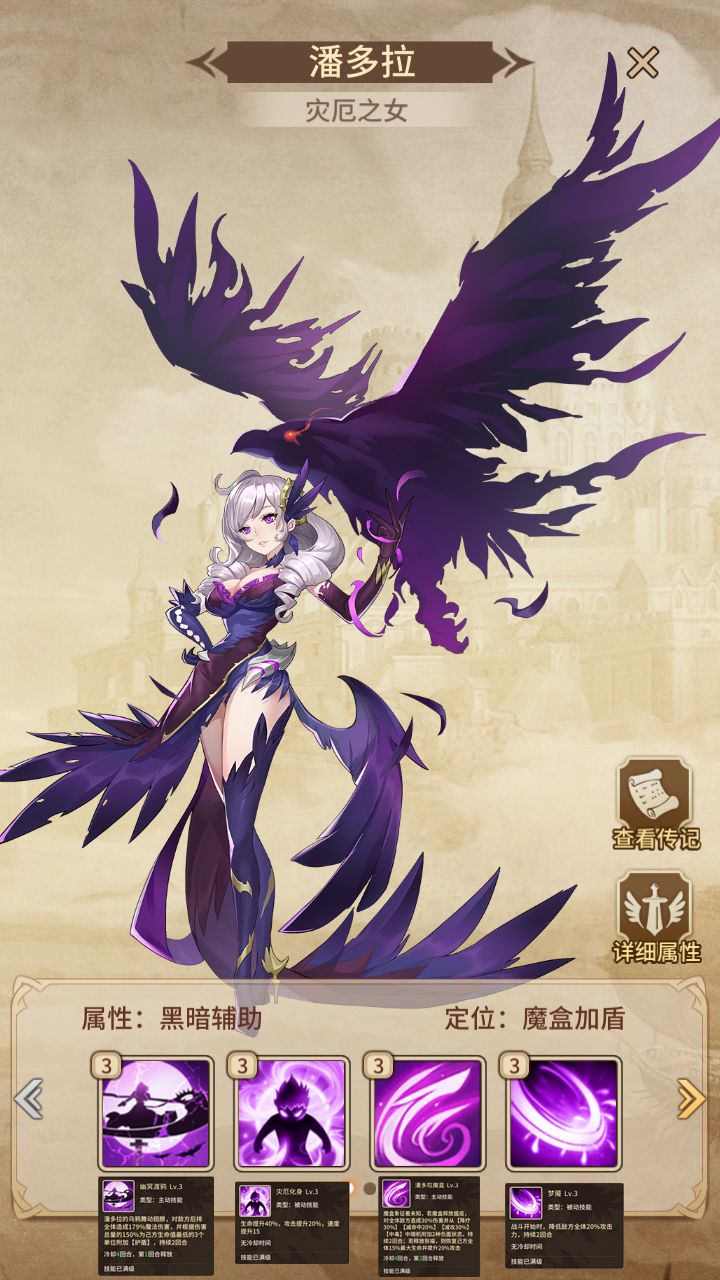 加全队闪避、抗暴、速度(需达到相应技能等级)概率降低对方英雄命中且随机使2名英雄收到百分比伤害加深(闪避流派可考虑)