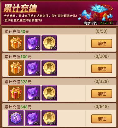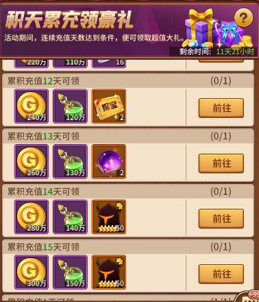 累计充值15天(其中有些奖励还算不错,可考虑每日打卡)(个人意见)