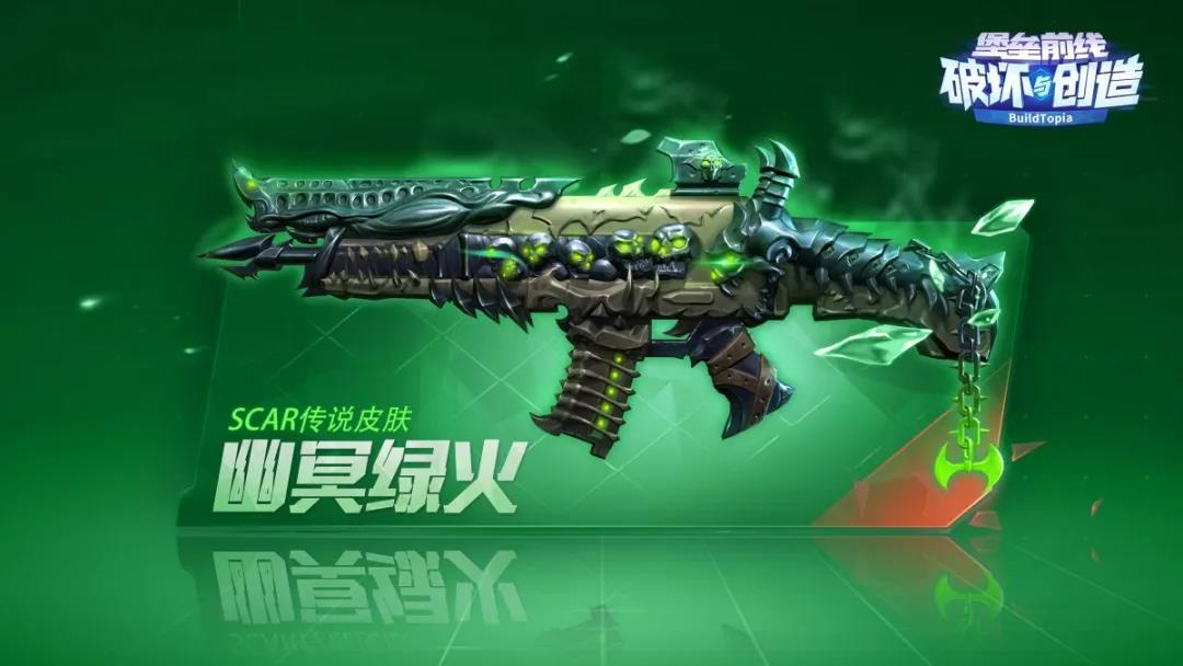 全新礼包【幽冥绿火】现已上线,购买即有几率获得全新scar步枪传说皮肤幽冥绿火。