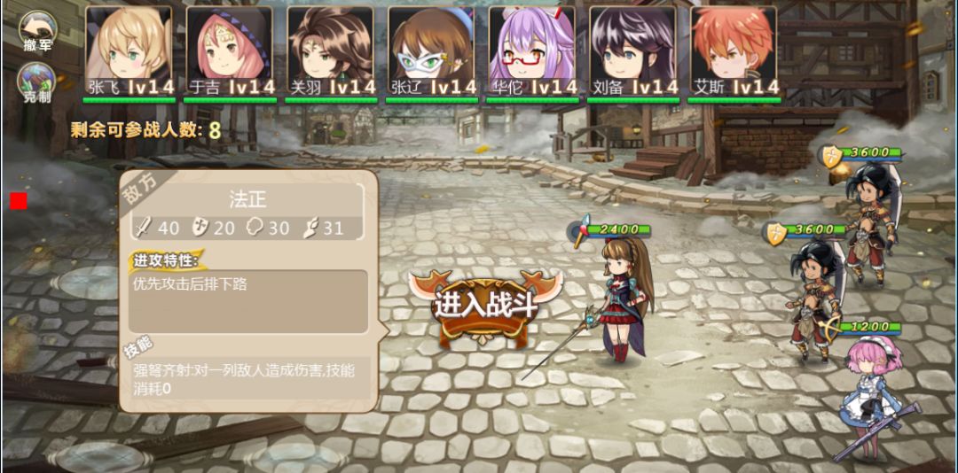 1. 刘璋伤害十分高且有攻击特性,因此炮灰至少需要能够扛住刘璋两次攻击,如果扛不住两次,那就去升级或者招募吧。