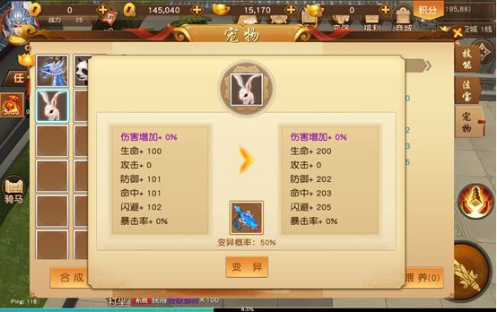 灵兽可以通过进阶功能使当前灵兽的品质提升,灵兽升阶时需要使用其他灵兽充当材料,当灵气值达到100%时就可以进行升阶;灵兽品质提升时有几率使灵兽直接发生变异。