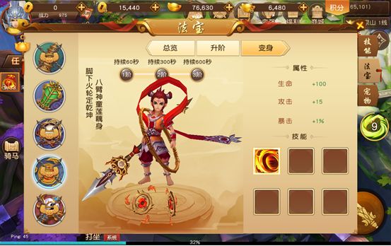 激活和升阶法宝可以获得属性加成;