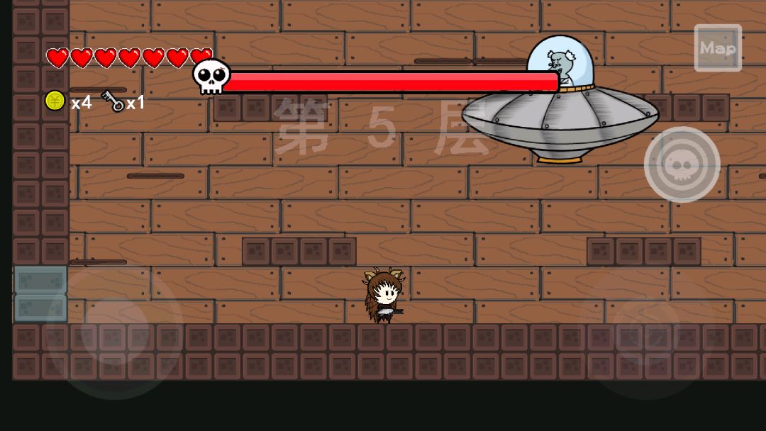 好哒,新BOSS呢是一个坐在飞碟上的遭老头子, 由于美工问题导致飞碟看起来像盘子,不如我们就叫他接盘侠好了... 请看图(๑•́ ∀ •̀๑)
