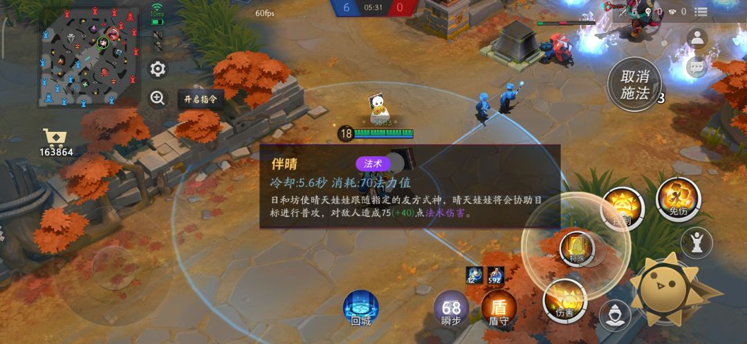 暖日飞至最远处后将飞回晴天娃娃身边,对返回路径上的敌人造成法术伤害。在飞行过程中,若暖日命中了敌方式神,则会为之后碰到的友方式神回复生命值