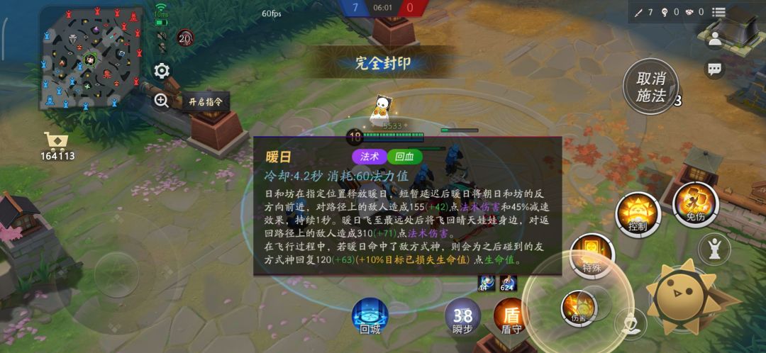 日和坊在指定位置释放暖日,短暂延迟后暖日将朝日和坊的反方向前进,对路径上的敌人造成法术伤害和减速效果。