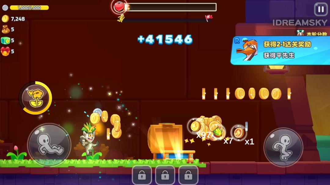 【技能】每隔一段时间可发动技能,发动技能期间场景变为热带雨林,地面生长出大量植物,拾取植物花瓣获得分数