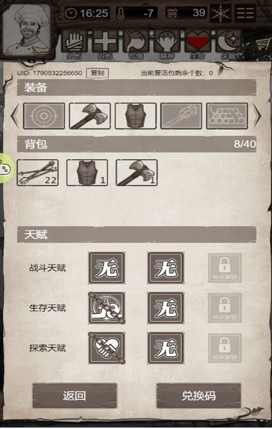 角色:厨师 天赋:修仙党 选地:树林