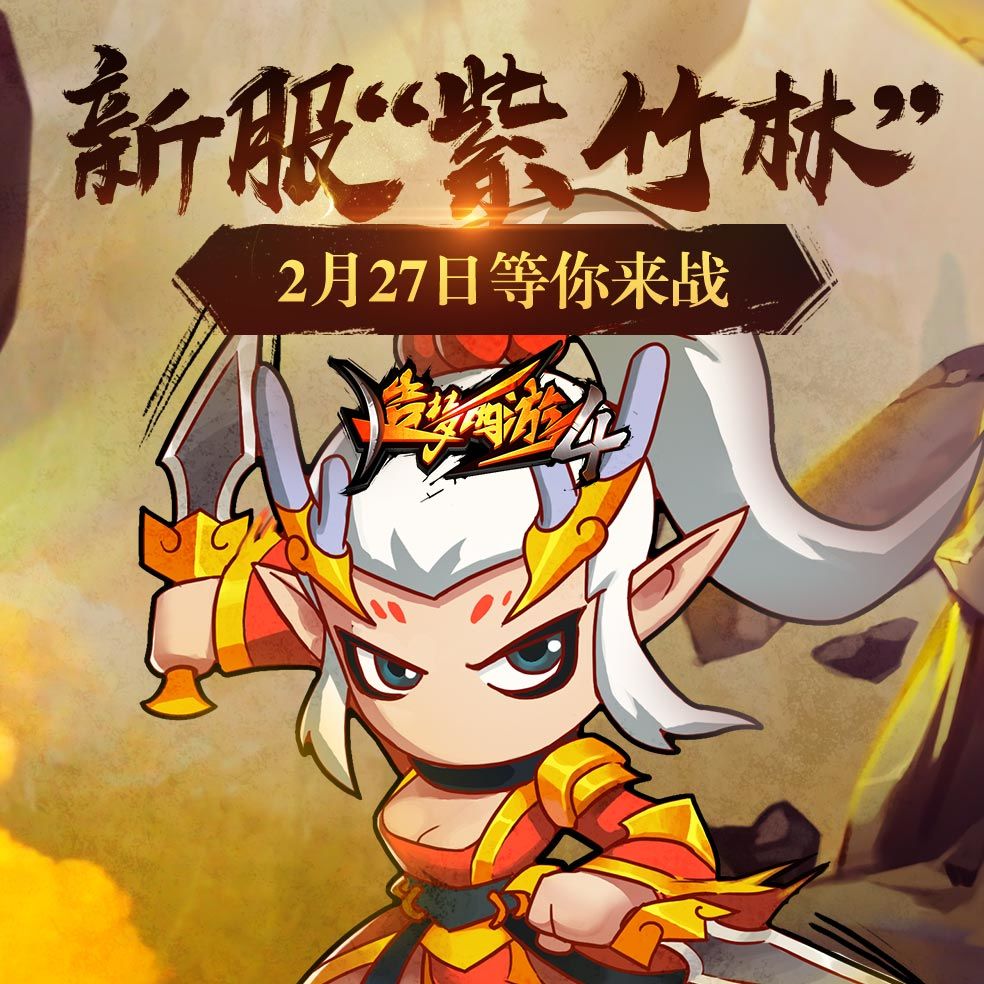 回答:“2月27日12点在手机应用商店(比如vivo手机就是vivo应用商店,oppo手机就是oppo应用商店,以此类推),搜索造梦西游4进行下载,点击区服 紫竹林,就能一起在新服中玩耍啦!”